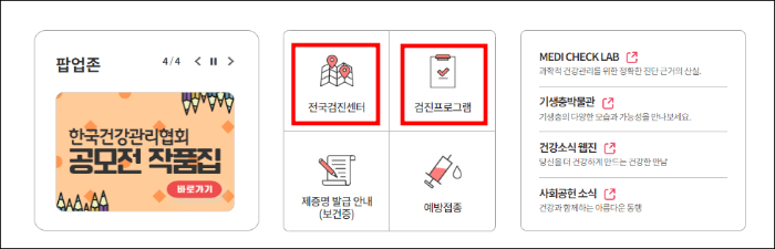 검진예약을 누르시고, 건강검진 예약을 하실 수 있습니다.