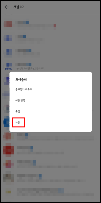 2. 그럼 선택할 수 있는 메뉴가 뜨는데요. 차단을 눌러줍니다.