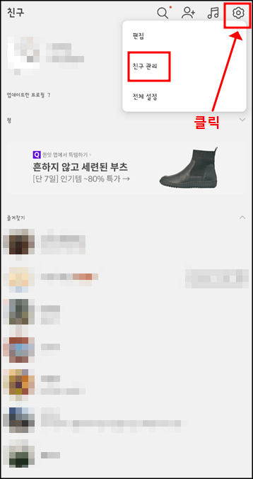 3. 그럼 아래와 같은 메뉴가 뜨는데 친구관리를 눌러줍니다.