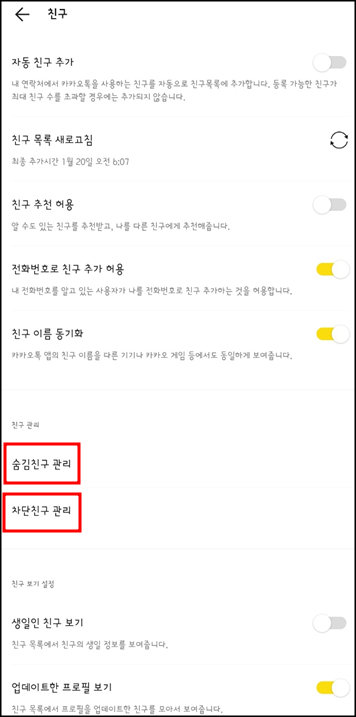카카오톡 친구차단